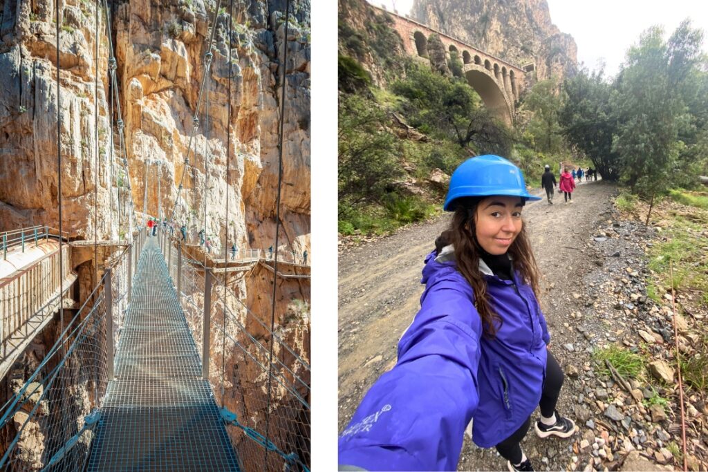 Le Caminito del Rey est une randonnée insolite à ne pas manquer : une passerelle accrochée à flanc de falaise au-dessus des gorges d’El Chorro, avec sections sur caillebotis, tunnels et pont suspendu final. C’est superbe été comme Automne ; pour la petite histoire, nous l’avons fait sous la pluie et nous avons adoré ( couleurs intenses, ambiance dramatique et peu de monde).