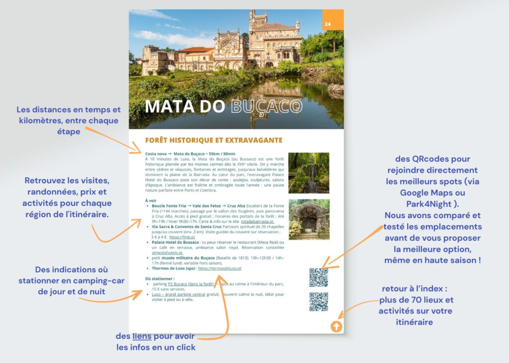 Suivez notre Itinéraire : plus de 80 pages avec toutes les infos (spots géo-localisés, horaires et prix des activités, découvertes insolites et culturelles, les plus belles randonnées, haltes intimistes en camping‑car, contacts de terrains privés, visites de vignobles, etc…), bref tout ce qu’il faut pour vous laisser porter sans perdre votre liberté. Plus d’infos en bas de page.1