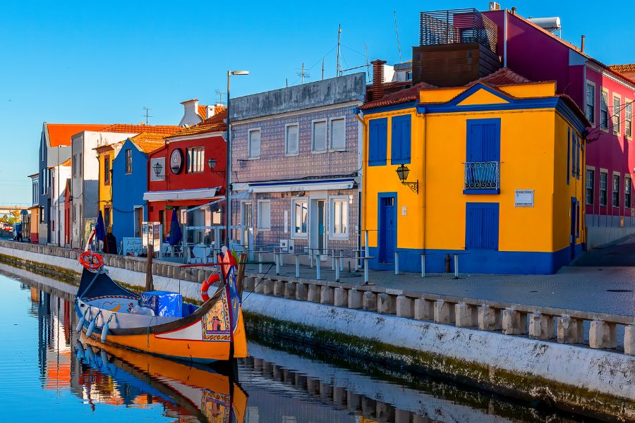 Aveiro charme par ses canaux et ses façades Art nouveau, tandis que Costa Nova aligne ses maisons rayées face à l’océan. Grandes plages, pistes cyclables et lumière douce en fin de journée. Parfait pour une étape iodée entre Porto et le centre.